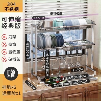 新鋪頭 加厚不銹鋼水槽碗碟架瀝水架廚房置物架家用刀架收納架碗筷濾水架不銹鋼流理台水槽架流理台廚房設備