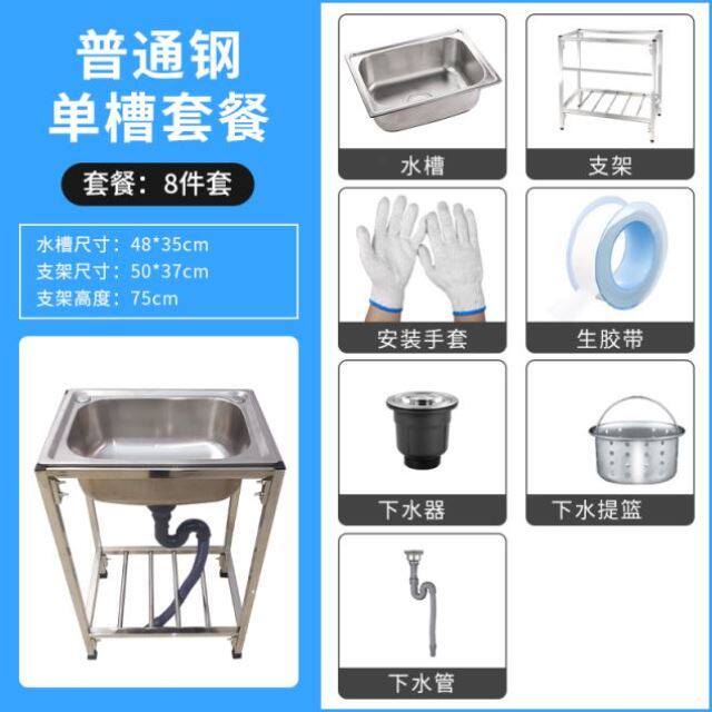 厨房不锈钢简易带支架单槽洗碗池洗菜盆水盆落地支架操作台面水槽 虎窝拼